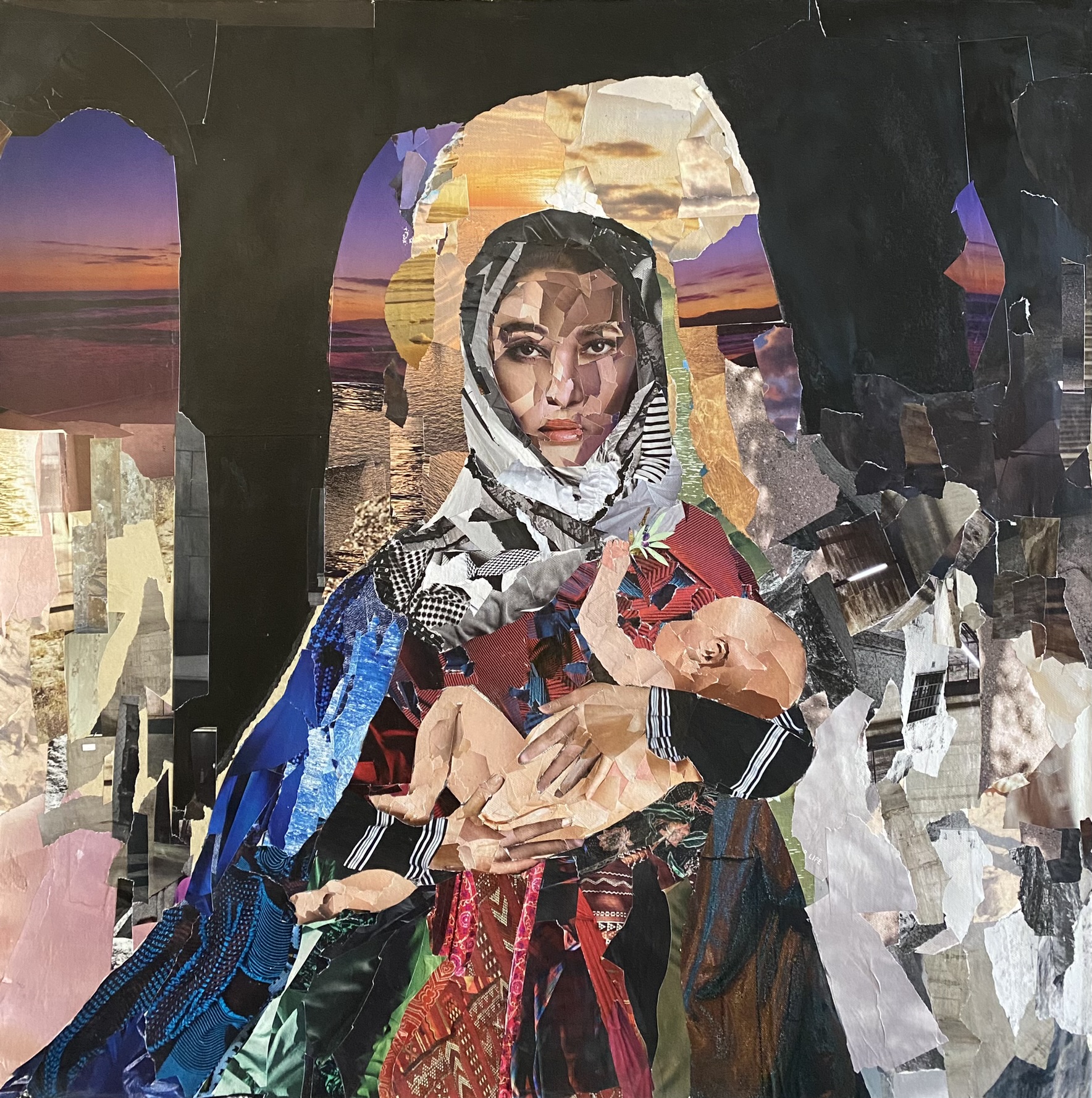 I chose collage because motherhood itself is a collage—of identity, memory, loss, and becoming. Every torn edge, every layered piece, is part of her wholeness.